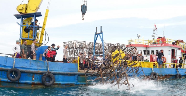 Knalpot Ilegal Disulap Jadi Rumah Ikan, PT TIMAH Tbk dan Ditlantas Polda Babel Tenggelamkan Rumpon di Perairan Rebo