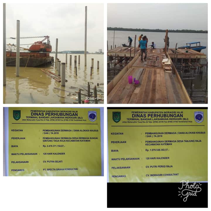 KARIMUNTODAY.COM-KATEMAN – Proyek Pembangunan Dermaga Desa Sungai Guntung,Kecamatan Kateman,Kabupaten Inhil Provinsi Riau,dikerjakan oleh Kontraktor Pelaksana CV Putra sejati,Konsultan Pengawas CV.Specta Graha Konsultan dengan anggaran Sebesar RP.2.478.371.154,67.dengan waktu Pelaksanaan 120 Hari Kalender Pembangunan bersumber dari Dana Alokasi Khusus (DAK) Tahun 2019.
