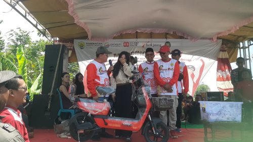 Usai membuka kegiatan,Wabup Sugeng juga menyempatkan diri untuk mengambil nomor undian dan membacakannya di depan ribuan pengunjung. Dian, salah seorang warga Desa Pranten beruntung mendapatkan sebuah sepeda listrik yang langsung diserahkan Wabup kepada warga.