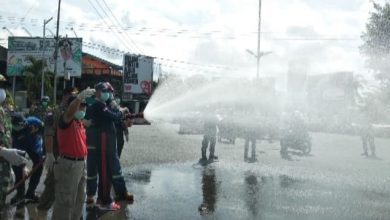 Lawan Corona, KNPI Lingga Lakukan Penyemprotan Disinfektan dan Dukung Bloking Area
