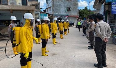 Operasi Aman Nusa II Seligi 2020, Personel Polda Kepri Laksanakan Penyemprotan Disinfektan