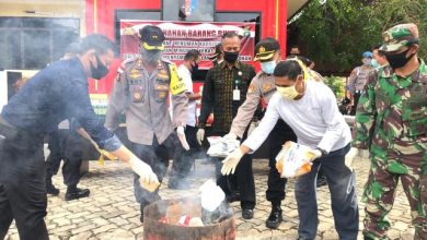 Menjelang Bulan Ramadhan, Polres Lingga Lakukan Pemusnahan Makanan Kadaluarsa dan Minuman Keras