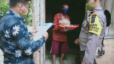 Jelang Ramadhan Jajaran Polsek Kundur Masih Bagikan Nasi Bungkus Kepada Masyarakat Terdampak Corona
