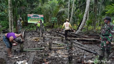 Koramil 07/Reteh Beserta Masyarakat Gelar Karya Bhakti Bedah Rumah Warga