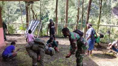Personel Satgas Pengda Rawan Brimob Polda Kepri Laksanakan Kerja Bakti Bersama TNI, dan Pemkab Mimika