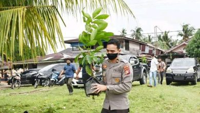 Sesuai Intruksi Kapolri! Polres Kuansing Lakukan Penanaman Pohon di Desa Seberang Taluk