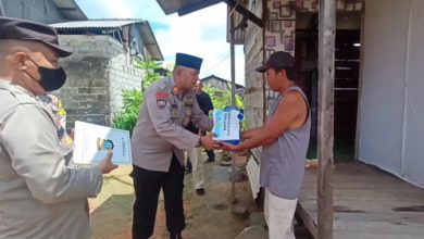 Bhabinkamtibmas Polsek Dolmer Beri Sembako Kepada Warga