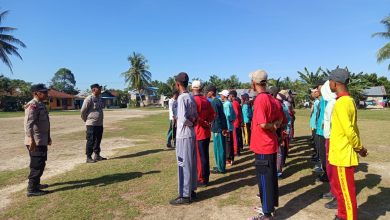Jelang HUT RI ke-80, Bhabinkamtibmas Polsek Bandarkhalipah Latih Baris Berbaris