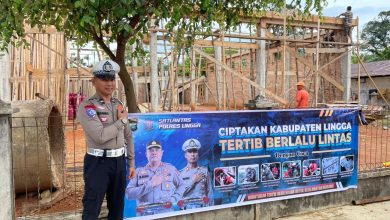 Upaya Tekan Angka Kecelakaan, Satlantas Polres Lingga Sosialisasikan Tertib Lalu Lintas Lewat Spanduk