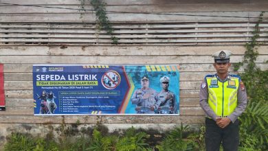 Cegah Risiko Kecelakaan, Satlantas Polres Lingga Pasang Spanduk Larangan Sepeda Listrik di Jalan Raya