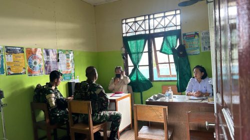 Kegiatan ini dipimpin langsung oleh Danpos Okpol Letda Inf Lupi dan disambut hangat oleh warga serta tenaga medis setempat. Selain berdialog santai dengan masyarakat dan petugas kesehatan, personel TNI turut membantu pelayanan dasar serta mendengarkan aspirasi terkait kondisi sosial dan kesehatan masyarakat di sekitar pos.
