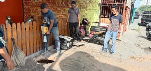 Maka dari itu kita melakukan pembongkaran Saluran Air tersebut dan membuat lubang kontrol kembali, agar memudahkan petugas kita membersihkan.