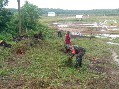 KARIMUNTODAY.COM, Kundur -Untuk menjalin Komunikasi Sosial (Komsos) seiring untuk meningkatkan ketahanan pangan di wilayah binaannya Kopda TD Hutasoit Babinsa Koramil 03/Kundur melakukan pembenahan jalan menuju areal persawahan bersama warga RT 01 RW 03 Desa Teluk Radang Kecamatan Kundur Utara Jum’at (03/9/2021).