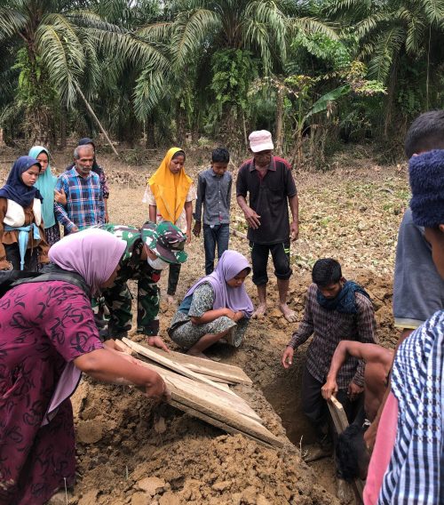 Babinsa Koramil 29/Langkahan Evakuasi dan Makamkan Jenazah Korban Banjir di Desa Geudumbak