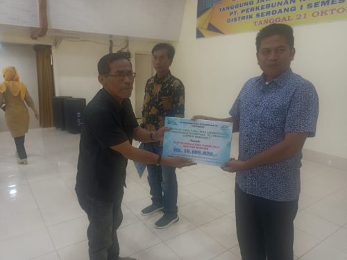 KARIMUNTODAY.COM, SERGAI – Manager PT. PN III Kebun Gunung Monako Bapak Judha Iskandar yang diwakili Asisten Kepala (Askep) PT. PN III Kebun Gunung Monako Bapak Sugiono Purba SP Salurkan Dana Program Tanggung Jawab Sosial Dan Lingkungan (TJSL) kepada Masayarakat Sekitar Perkebunan, pada Jumat (21/10/2022) sekitar pukul: 11.00 wib, di Wisma Serba Guna PT. PN III Kebun Gunung Pamela yang satu Lokasi dengan Kantor PT PN III Distrik Serdang I yang beralamat diDesa Buluh Duri Kecamatan Sipispis Kabupaten Serdang Bedagai – Sumut.