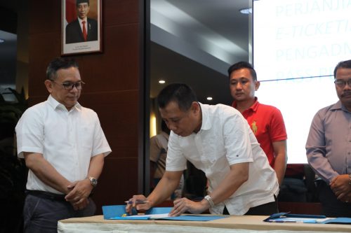 Wacana pemberlakuan E-ticketing ditandai dengan kegiatan penandatanganan perjanjian Pelayanan E-ticketing dan Tata Cara Pengadministrasian Layanan Pass Penumpang Domestik antara Badan Pengusahaan Batam dalam hal ini Anggota Bidang Pengusahaan, Wan Darussalam, dan 18 (delapan belas) pimpinan perusahaan operator kapal domestik bertempat di Marketing Centre, BP Batam, Selasa (7/11/2023).