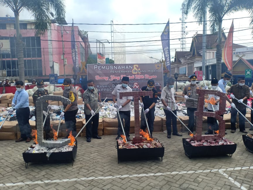 Untuk diketahui, barang – barang yang dimusnahkan oleh KPPBC TMP C Tembilahan saat itu, ialah 11,9 juta batang rokok, 119 unit handphone dan 90 unit laptop berbagai merk, ratusan karton barang elektronik serta barang – barang lain yang tidak memenuhi kewajiban pabeannya.