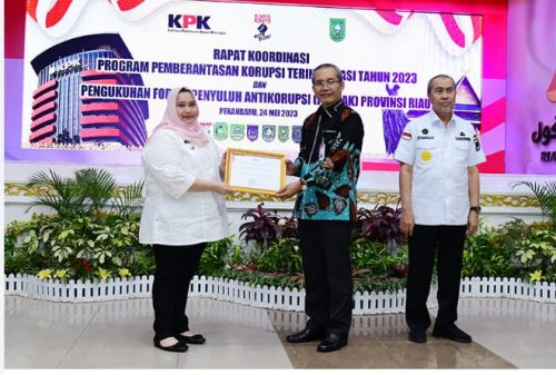 KARIMUNTODAY.COM, PEKANBARU – Dinilai sukses melakukan pemulihan dan penertiban sejumlah aset, Bupati Kasmarni menerima apresiasi dari Komisi Pemberantasan Korupsi (KPK).