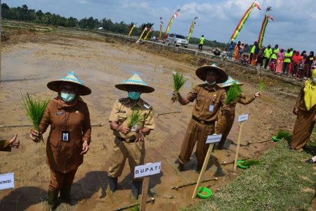 Bupati Kuansing Hadiri Penanaman Perdana Mutu lntensifikasi (PMI) Tahun 2020, di Desa Teberau Panjang