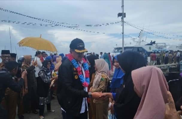 KARIMUNTODAY.COM, NATUNA – Untuk memastikan aspek pembangunan di Kecamatan Midai dan Suak Midai, Bupati Natuna Abdul Hamid Rizal beserta rombongan mengadakan kunjungan kerja (Kunker) di 2 Kecamatan tersebut. Tiba di pelabuhan Midai, Bupati beserta rombongan disambut baik masyarakat setempat dan tarian melayu serta kalung bunga yang melingkar ditubuh Hamid.
