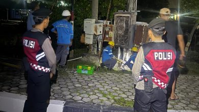 Respon Cepat Sat Samapta Polres Karimun Pengamanan TKP Kebakaran Travo Listrik