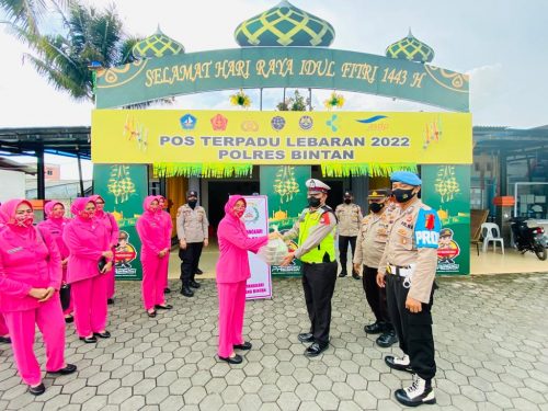 KARIMUNTODAY.COM, BINTAN – Menjelang Idul Fitri Bhayangkari Cabang Bintan keliling Kabupaten Bintan untuk memberikan Parsel serta dukungan kepada Personil Polres Bintan yang melaksanakan Operasi Ketupat Seligi 2022 di setiap Pos Pam dan Pos Yan pada kamis (28/4/22).