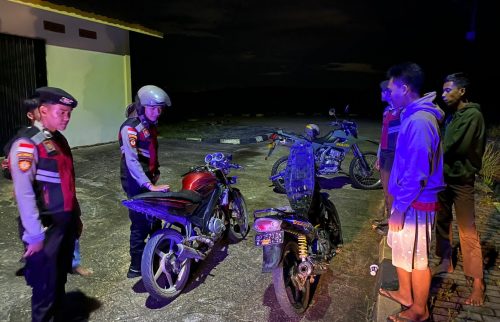 Saat melintasi sekitar kantor Dinas Kesehatan personil Satsamapta menemukan sekelompok remaja yang duduk-duduk di pinggir jalan dengan sepeda motornya beberapa unit.