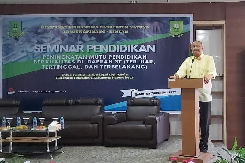 Hal itu disampaikan oleh Bupati Natuna, Drs. H. Abdul Hamid Rizal, M.Si., saat memberikan sedikit gambaran tentang daerah, dalam sambutannya pada acara Seminar yang digelar Himpunan Mahasiswa Kabupaten Natuna (HMKN) yang ada di Kota Tanjungpinang, Provinsi Kepulauan Riau (Kepri), bertempat di Gedung B Asrama Haji, Jalan Pemuda, Kota Tanjungpinang, Sabtu (02/11) lalu.