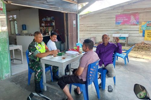 Dekat dengan Rakyat, Babinsa Berdialog Santai Bahas Situasi Kamtibmas di Warung Kopi