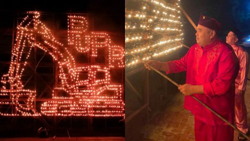 Lampu colok dengan miniatur “Beko” bertempat di halaman Kantor DPUPR, Jalan Pertanian, Senin 17 April 2023. Diresmikan langsung oleh Kadis PUPR Kabupaten Bengkalis Ardiansyah didampingi Erdila Fitriadi Sekretaris.
