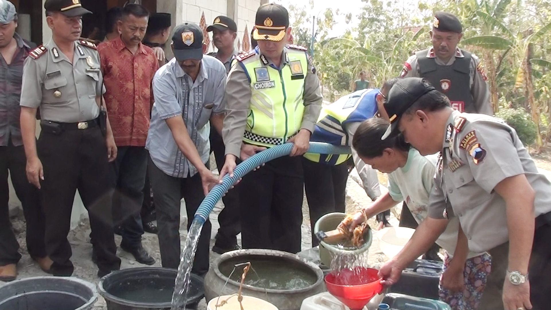 Enam Bulan Warga Di Grobogan Kekurangan Air Bersih, Polres Grobogan Bantu Droping Air Bersih