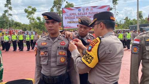 KARIMUNTODAY.COM, BINTAN – Kapolres Bintan AKBP Riky Iswoyo, S.I.K.,M.M. pimpin apel gelar pasukan Operasi Mantab Brata Seligi pengamanan pemilu 2024, Apel gelar pasukan tersebut dilaksanakan di lapangan Bhayangkara Polres Bintan, Selasa (17/10/2023).