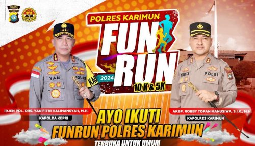 KARIMUNTODAY.COM, KARIMUN – Kapolres Karimun AKBP Robby Topan Manusiwa, S.I.K., M.H. Mengatakan untuk memeriahkan Hari Ulang Tahun Polisi Lalu Lintas Polres Karimun ,Kapolres mengajak seluruh lapisan masyarakat Kabupaten Karimun untuk hadir dalam acara Fun Run yang dilaksanakan di Coastal Area tepatnya di Panggung Putri Kemuning pada hari Minggu tanggal 29 September 2024 jam 05.45 Wib.