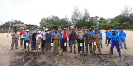 Wakil Bupati H. Anwar Hasyim, M. Si.meresmikan penanaan pohon mangrove sumber daya Ikan Lestari bagi KUB Batu Tuan Nelayan Kobel di pantai Remis Desa Sawang Laut Kecamatan Kundur Barat, Selasa (23/06/2020). Turut hadir mendampingi, Staf Ahli, Kadis Perikanan, Kadis Lingkungan Hidup, Kadis Pendidikan, Kadis pertanian, Kadis Pemuda dan Olahraga, Sekretaris PU, Sekretaris Dishub, Kabag KomHumas, Kabid Kasubag dan lurah beserta staf diingkugan pemerintah Kabupaten Karimun.