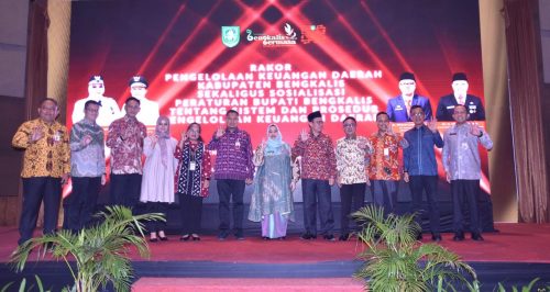Dalam sambutannya Bupati Bengkalis Kasmarni menyampaikan rapat kordinasi dan sosialiasi peraturan bupati ini dilaksanakan guna memberikan pemahaman, wawasan dan persamaan persepsi terhadap regulasi yang mengatur pengelolaan keuangan daerah.