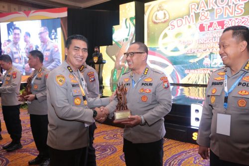 KARIMUNTODAY.COM, BATAM – Kegiatan Rakorbin SDM dan PNS Polri T.A. 2022 diselenggarakan oleh As SDM Polri dengan tema “Mewujudkan SDM Unggul Polri Presisi Untuk Meraih Kepercayaan Masyarakat”. Penyerahan penghargaan langsung di berikan oleh As SDM Polri Inspektur Jenderal Polisi Drs. Wahyu Widada, M.Phil., kepada Karo SDM Polda Kepri Kombes Pol Deni S. Utomo, S.H., S.I.K., M.H. Kegiatan juga diikuti oleh Kabagwatpers Biro SDM Polda Kepri, Kabagbinkar Biro SDM Polda Kepri, dan Kasubbagprog Bagrenprogar Biro Rena Polda Kepri. Bertempat di Shangri La Hotel Kota Surabaya. Kamis (9/12/2022).