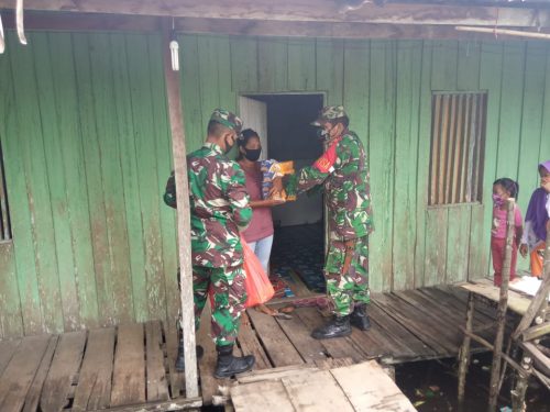 Ini dilakukan oleh anggota Kodim 0314/Inhil staf teritorial untuk warga yang membutuhkan dengan kegiatan tetap menjaga protokol kesehatan dan wargapun menyambut baik ketulusan prajurit Kodim yang datang ke rumah warga.
