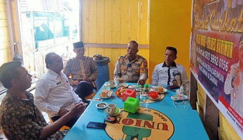 KARIMUNTODAY.COM, MORO – Dalam rangka menjalin komunikasi dan silahturahmi kepada masyarakat nelayan Kec. Moro, Polsek Moro Polres Karimun melaksanakan kegiatan jumat curhat yang di pimpin oleh Kapolsek Moro AKP Rizal Rahim, S.H. menyambangi langsung masyarakat Moro di kedai kopi Mantul Jl. Jend. Sudirman, Kp. Tengah Timur, Kel. Moro Timur, Kec. Moro, Kab. Karimun. Jum’at (29/09/2023)