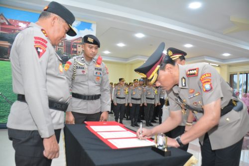 “Lebih lanjut, dalam kegiatan serah terima jabatan tersebut dilaksanakan juga penandatanganan berita acara serah terima jabatan, berita acara sumpah jabatan serta penandatanganan Pakta Integritas, yang merupakan hal wajib dilakukan kepada pejabat yang dilantik.” Jelas Kabidhumas Polda Kepri, Kombes Pol. Zahwani Pandra Arsyad, S.H., M.Si.
