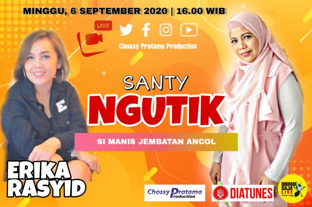 Erika Rasyid juga membuat kejutan yang lainnya, ia diundang tampil di program Santy Ngutik, yang akan tayang pada Minggu 6 September 2020 mulai pukul 16.00 WIB di akun media sosial Santy Sings.