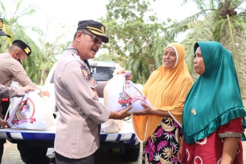 Kapolres Sergai Hadiri Pemberian Bantuan Paket Sembako Kepada Warga Korban Bencana Banjir di Desa Cempedak Lobang