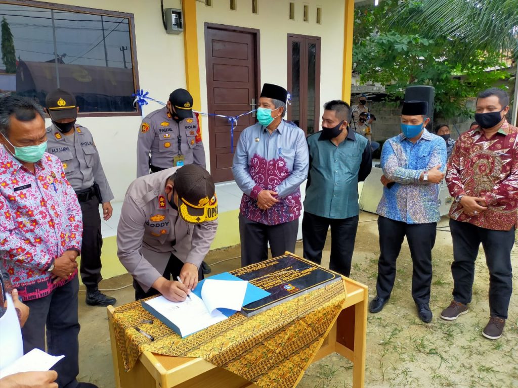 KARIMUNTODAY.COM, SIAK – Bupati Siak Drs. H.Alfedri.M.Si meresmikan Rukan Bhabinkamtibmas Kelurahan Perawang Kecamatan Tualang Kabupaten Siak di Jalan Raya Km. 4 Simpang Pasar Tuah Serumpun, Kamis (30/7/2020).
