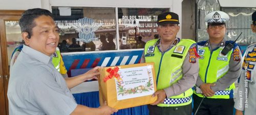 Selain meninjau kesiapan pos pelayanan, Pj Walikota juga memberikan bingkisan Natal kepada personel Pos Yan Operasi Lilin Toba 2023-2024 Simpang Beo. (MS)