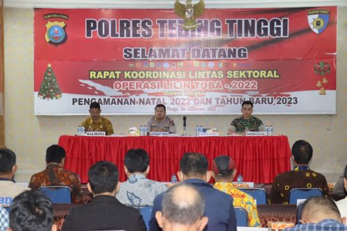 KARIMUNTODAY.COM, TEBING TINGGI – Kapolres Tebing Tinggi AKBP Mochammad Kunto WIbisono, S.H., S.IK., M.Si, memimpin pelaksanaan Rapat Koordinasi Lintas Sektoral Ops Lilin Toba – 2022 dalam rangka Kesiapan Pengamanan Natal 2022 dan Tahun Baru 2023 bertempat di Aula Kamtibmas Polres Tebing Tinggi Kota Tebing Tinggi – Sumut, Jumat (09/12/2022).