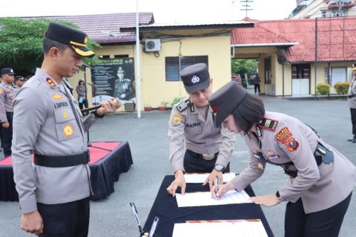 KARIMUNTODAY.COM, TEBINGTINGGI – Kapolres Tebingtinggi AKBP Andreas Luhut Jaya Tampubolon, S.IK., M.K.P., memimpin pelaksanaan upacara serah terima jabatan dan pelantikan jabatan sejumlah pejabat utama dijajaran Polres Tebingtinggi, Kamis (11/01/2024).