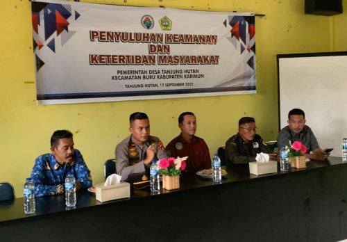 KARIMUNTODAY.COM, BURU – Kapolsek Buru Ipda Rusdiyanto, S.Sos., M.H. melaksanakan kegiatan penyuluhan keamanan dan ketertiban lingkungan di Balai Pertemuan Desa Tanjung Hutan, Kecamatan Buru. (17/09/2025)