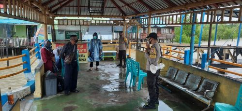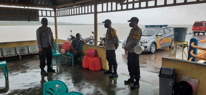 Kapolsek Kundur Barat (Kuba) AKP Edi Suryanto, turun langsung untuk menghimbau masyarakat dan pengguna jasa Maritim di pelabuhan Tanjung Berlian, Sabtu (2/1/2021). Himbauan tersebut dilakukan guna mencegah hal-hal yang tidak diinginkan seperti kapal yang membawa penumpang ada yang terjebak diperairan saat cuaca buruk terjadi.