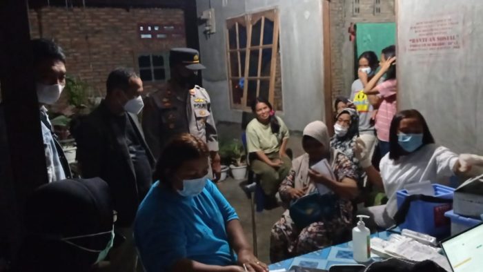 KARIMUNTODAY.COM, TEBING TINGGI – Kapolsek Padang Hulu Polres Tebing Tinggi Iptu Bringim Jaya, SH, MH, bersama dengan Personil Polsek Padang Hulu, dan Tim Nakes dari Puskesmas Pabatu Melaksanakan Vaksinasi Door To Door Tahap I dan Tahap II bagi Masyarakat Kelurahan Lubuk Raya Kecamatan Padang Hulu Kota Tebing Tinggi – Sumut.