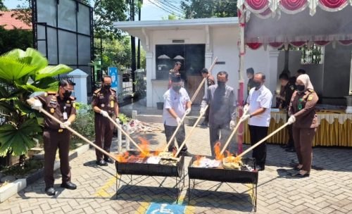 Kegiatan pemusnahan barang bukti tersebut dilaksanakan di halaman kantor Kejari Grobogan,Rabu (8/10/2025) siang.