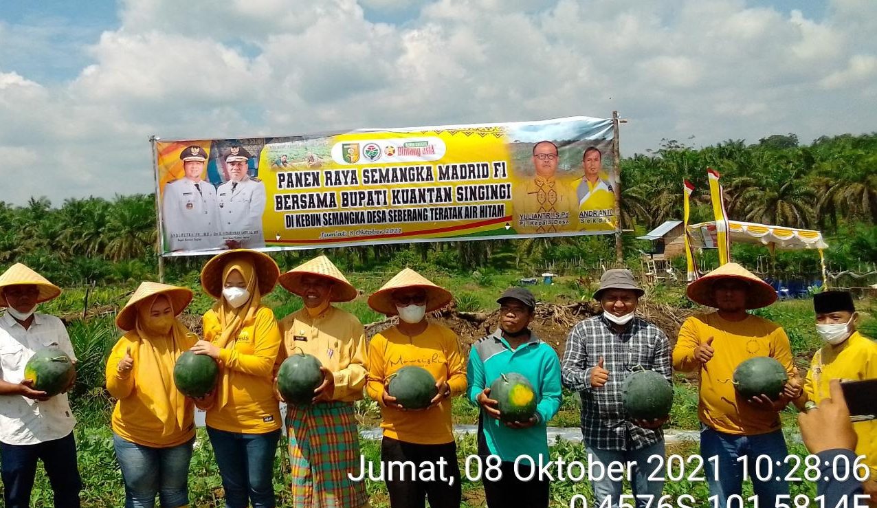 KARIMUNTODAY.COM, TELUK KUANTAN – Masyarakat Desa Teratak Air Hitam Kecamatan Sentajo Raya (Sentra) Kabupaten Kuantan Singingi (Kuansing) Panen Raya Semangka Jenis Madrid pada Jum’at 08/10/2021